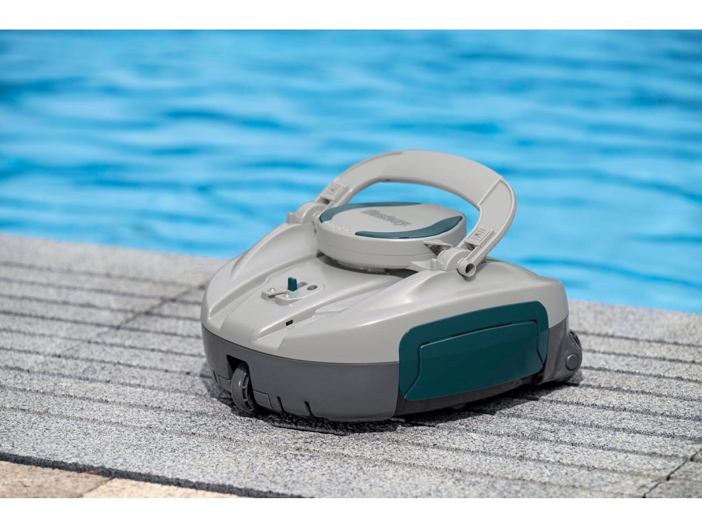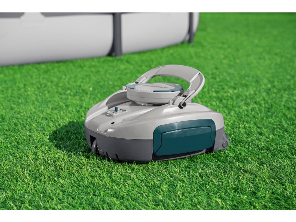 The integrated water sensors are particularly clever. As soon as you put the AquaTronix G150 in the water, it switches on automatically. When you take it out, it stops by itself, and its sophisticated nozzle system ensures optimal maneuverability and easy turning. Practical carrying handles are located on the top for quick direction changes or easy removal from the water. Maintenance is also a breeze: the 2.0-liter filter basket is very easy to remove and clean – you can look forward to a beautifully clean pool!