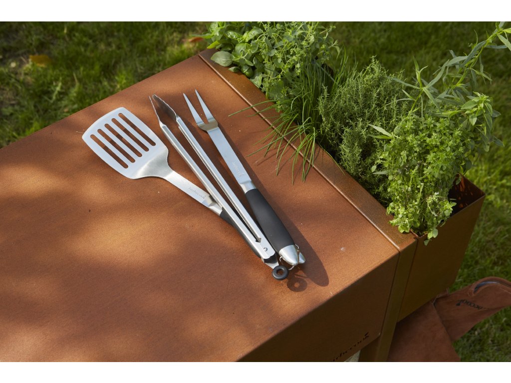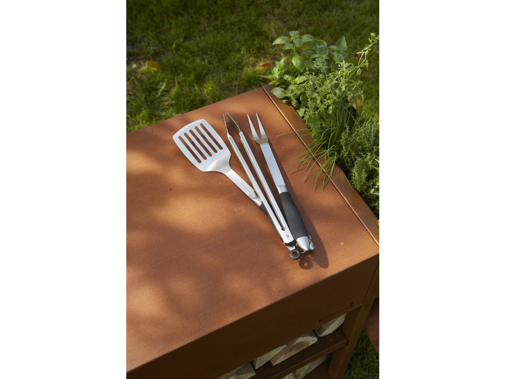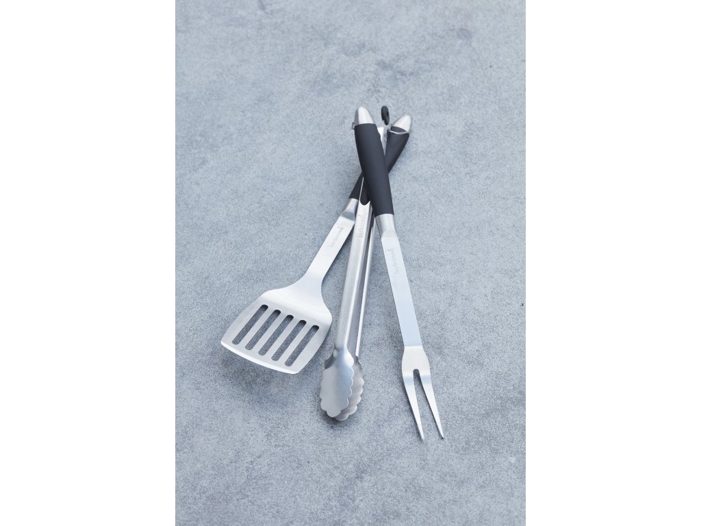 Barbecook Black Pepper stainless steel set with fork, tong and turner, black, 43 cm