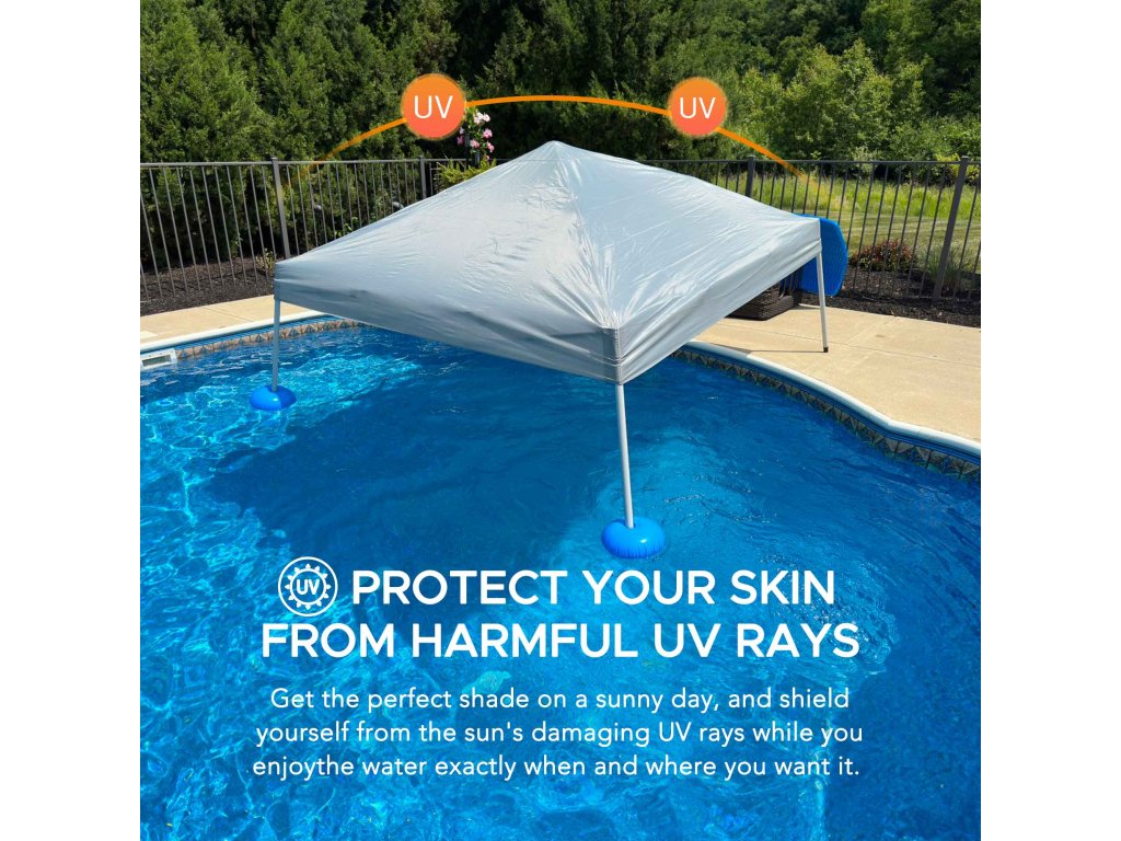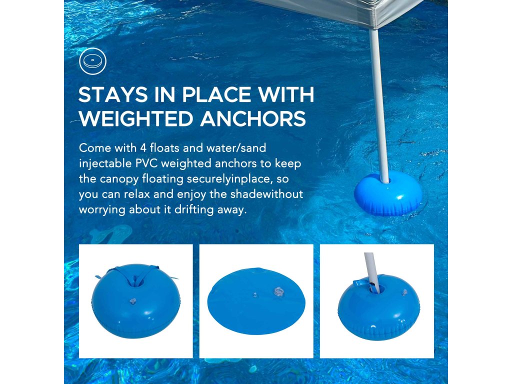 GRAN 300 x 300 cm Pool Float with Canopy, Steel and Aluminum Frame Pool Floating Canopy with PVC Floats, Hand Air Pump, and Carry Bag