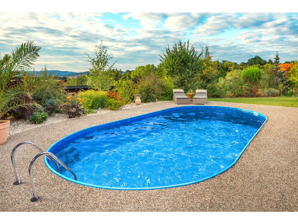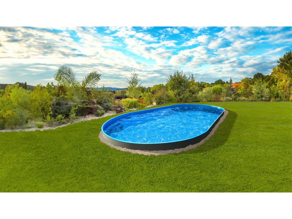 Ibiza oval - 5.00 x 9.00 x 1.50 m - wall thickness 0.75mm, top combi blue rails P1/P3, bottom rails, with holes for skimmer and backjet