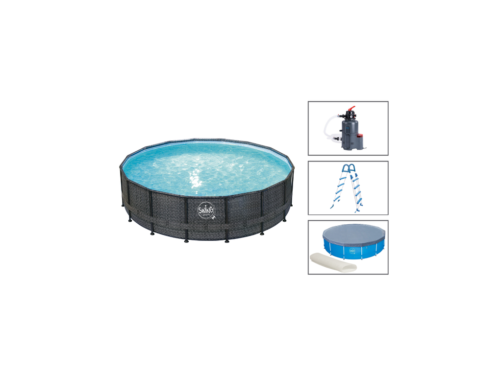 POOL SET - ELITE - WICKER FRAME POOL - 4.88m x 1.22m, Wicker dark (Herringbone)