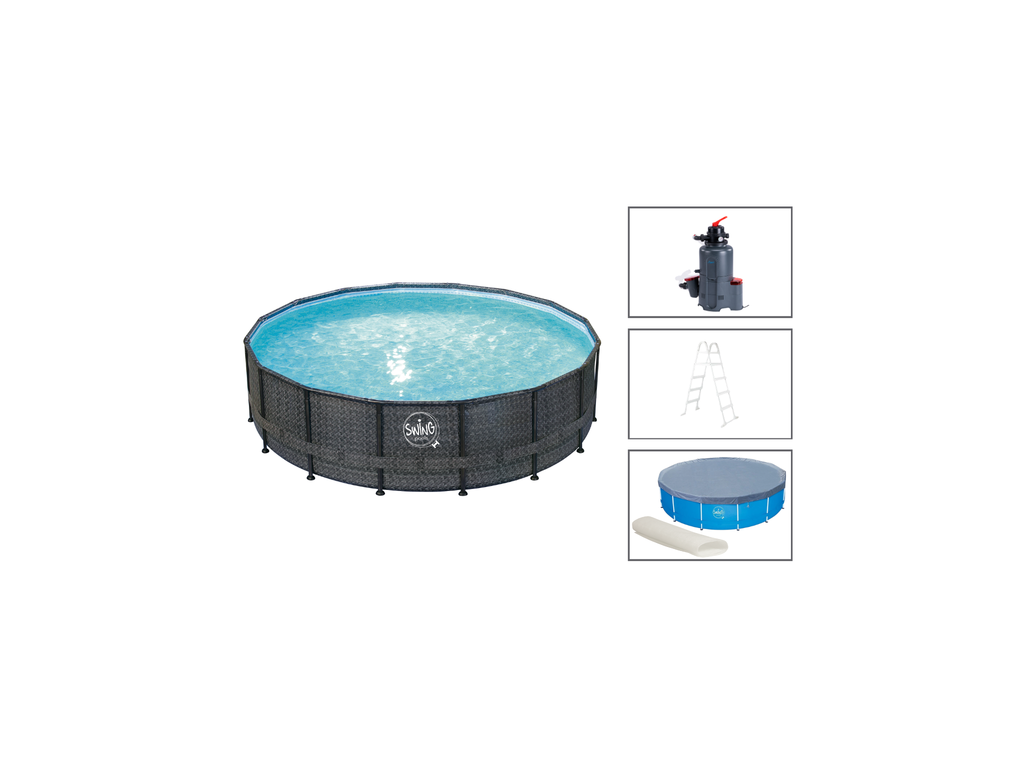 POOL SET - ELITE - WICKER FRAME POOL - 5.49m x 1.32m, Wicker dark (Herringbone)