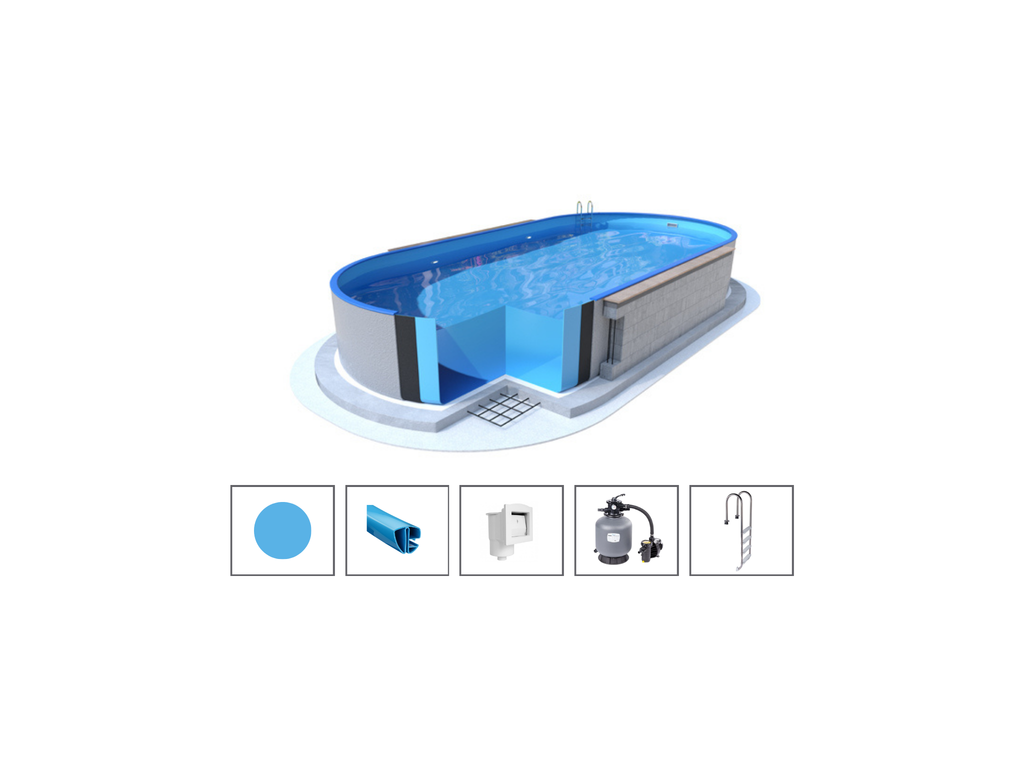 POOL SET - Ibiza oval - 6.00 x 12.00 x 1.50 m - grey wall thickness 0.75mm, with holes for skimmer and backjet, bottom rails