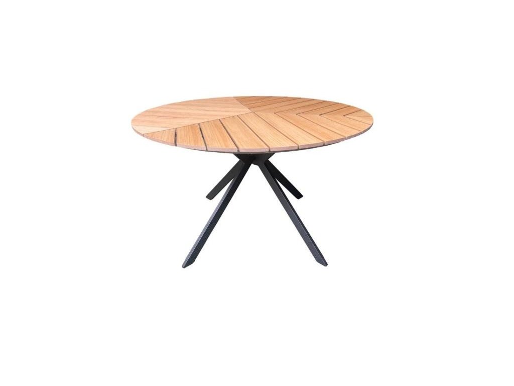 Round garden table with aluminum frame, artwood slatted top, 120x120x74 cm.