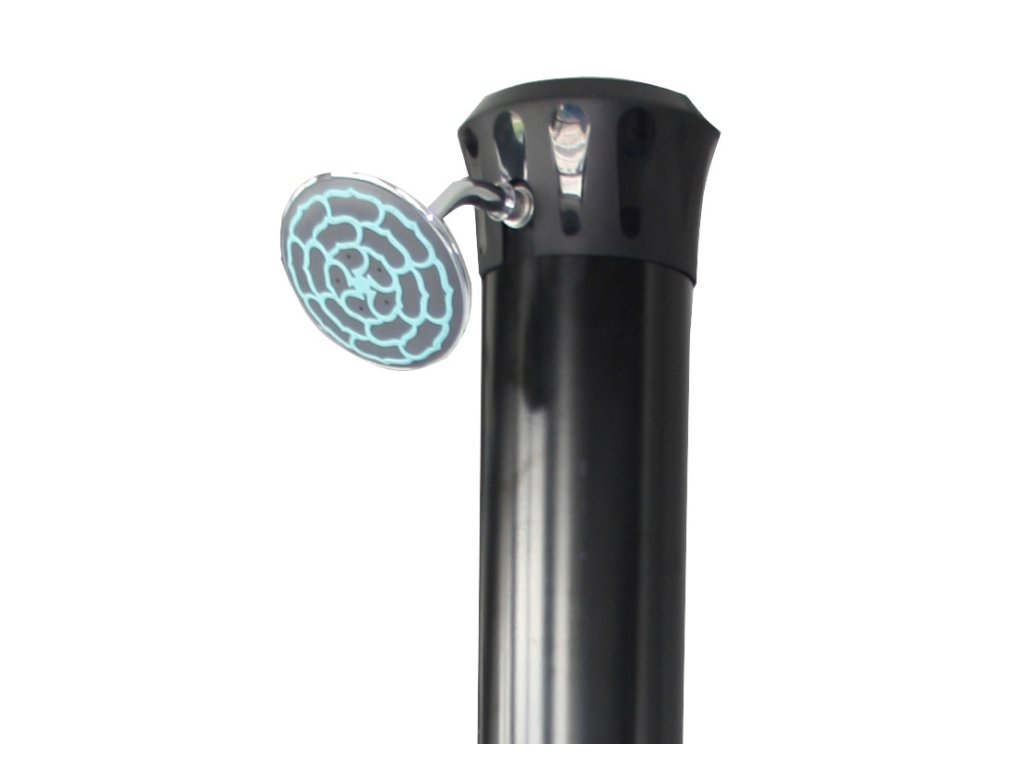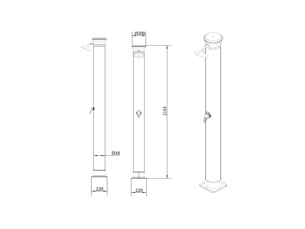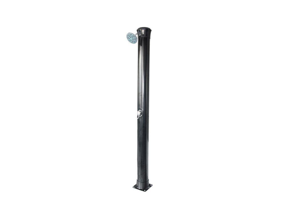 It heats water supplied from a garden hose, ensuring perfect comfort when showering with warm or lukewarm water. The water is heated by solar radiation and the shower body, which acts as a solar collector. The shower has a movable shower head. The solar shower is anchored firmly to the ground with 4 screws (not included), ensuring perfect stability. It is equipped with a lever tap for adjusting the water temperature. The shower has a lightweight, one-piece construction and is made of aluminum. The water heats up within one hour. Installation is quick and easy.