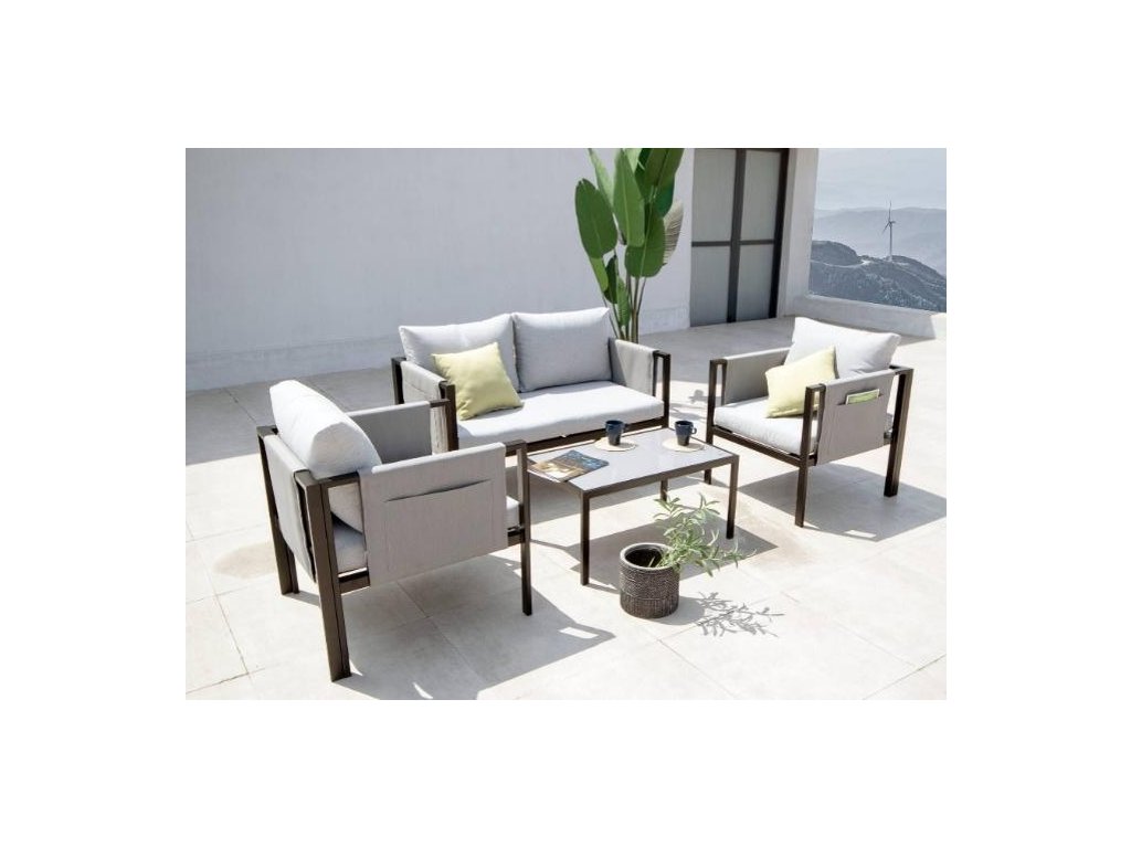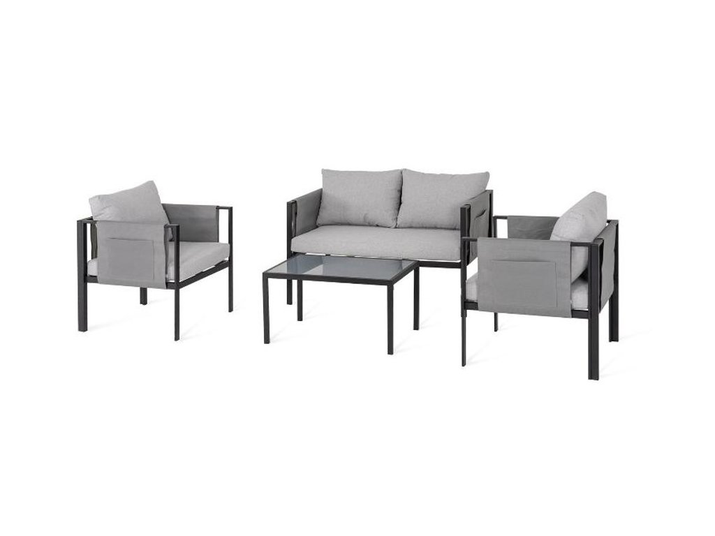 Garden set 2+1+1+1, black steel frame with gray polyester coating.Armchair - 67x71x66 cmTwo-seater sofa - 124x71x66 cmTable - 80x50x40 cm