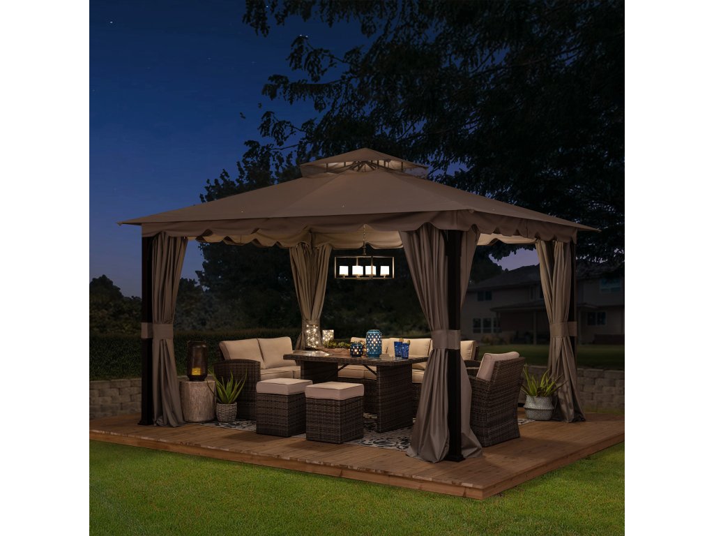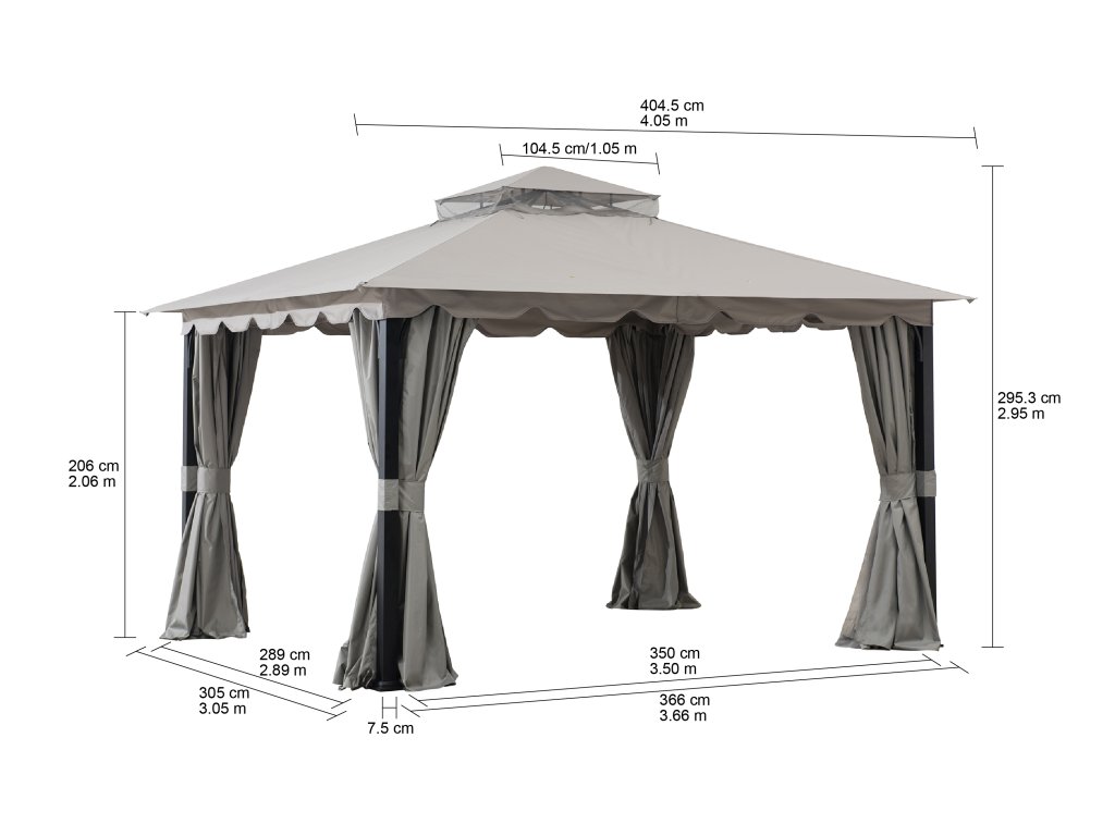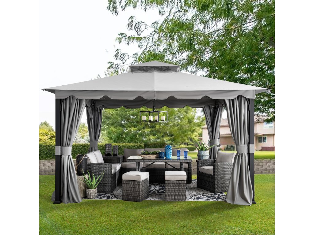 STOJ 330 x 396 cm Gray Steel Gazebo with 2-tier Hip Roof