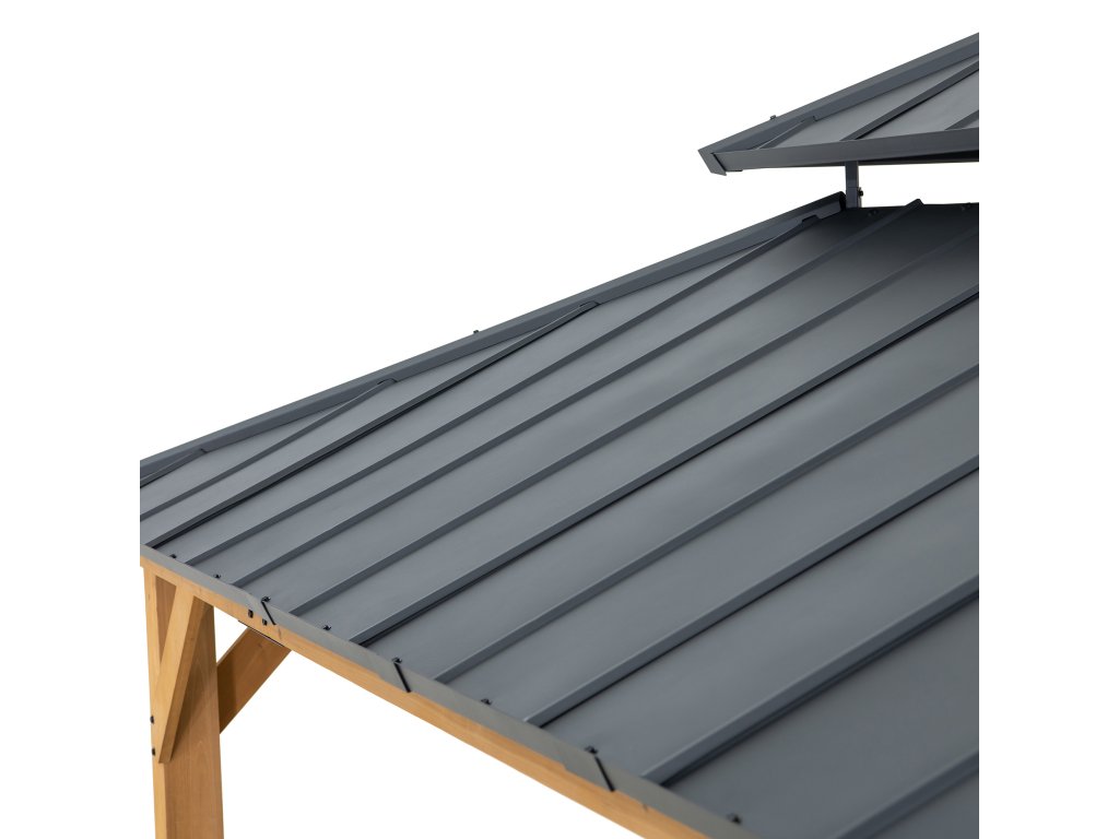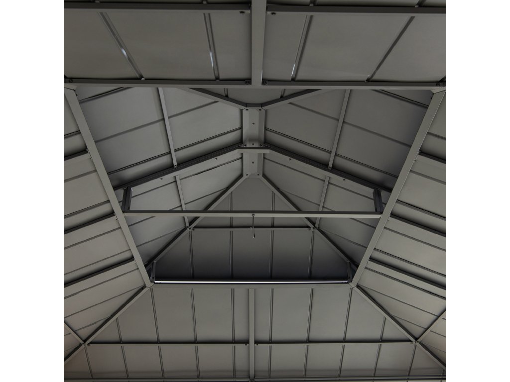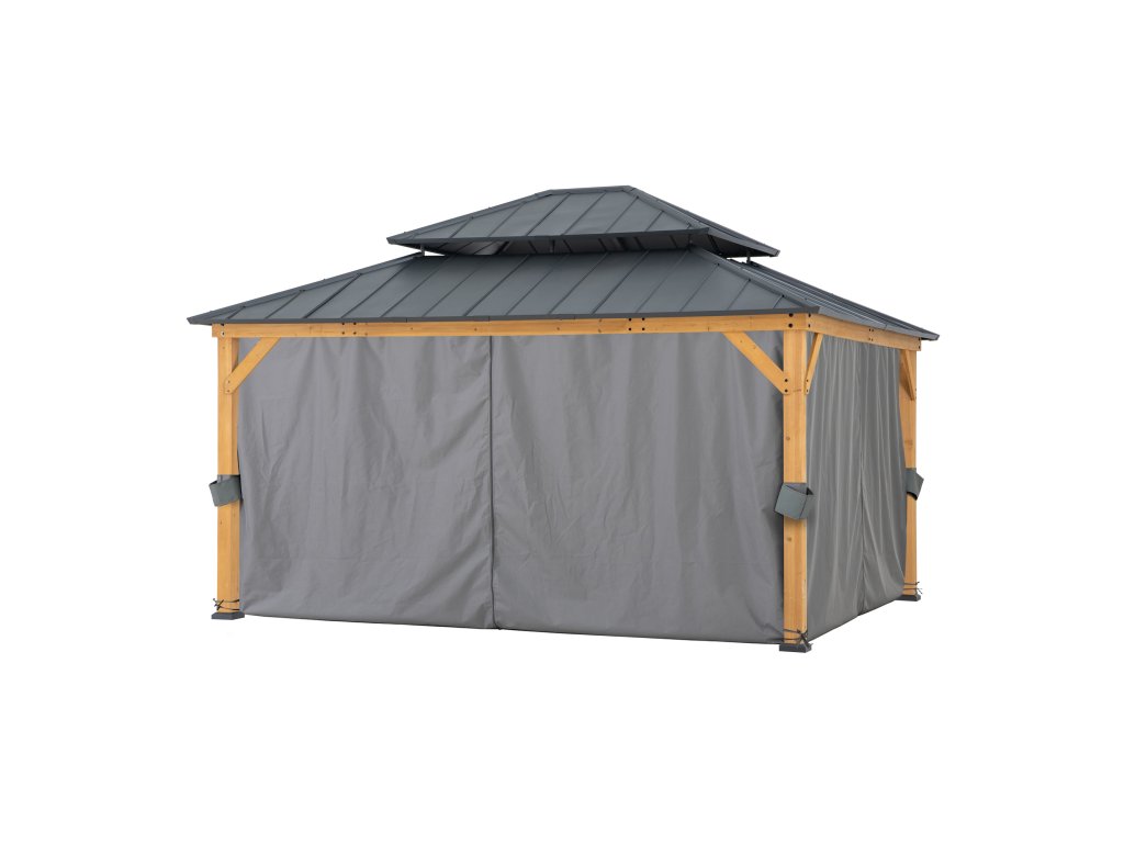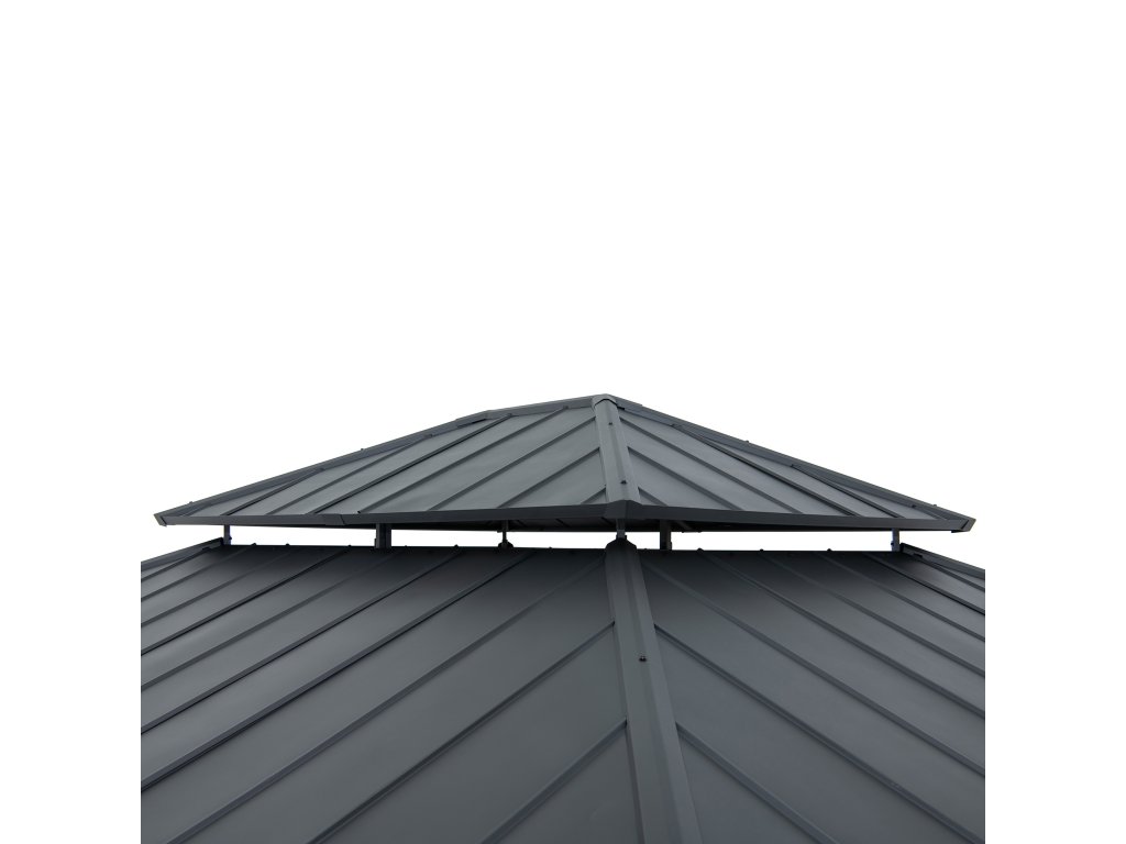 Trivor 390 x 450 cm FSC 100% two-tiered Hard Top Gazebo with Anthracite Steel and with Curtain & Netting