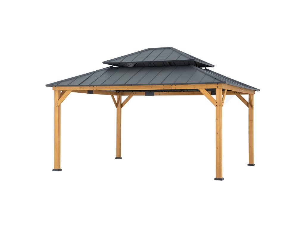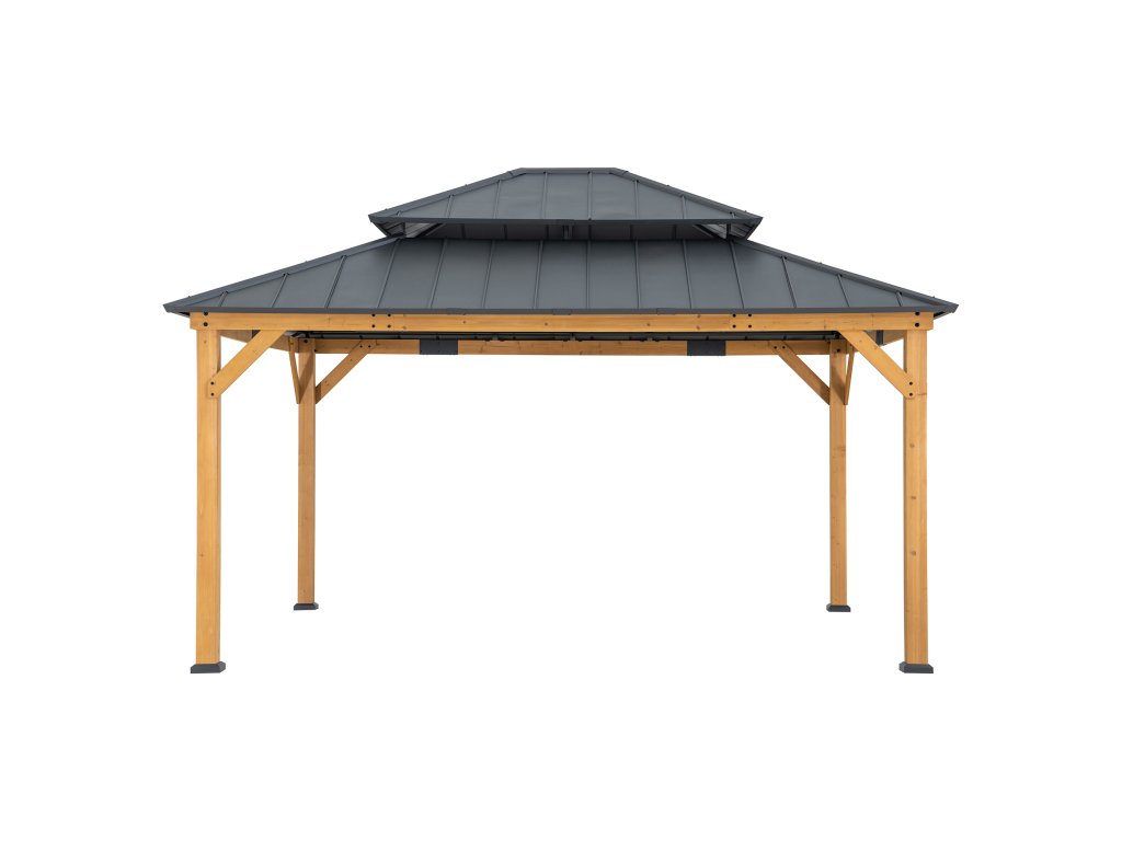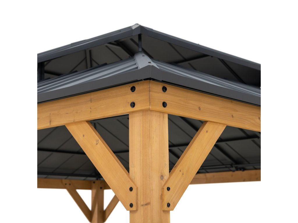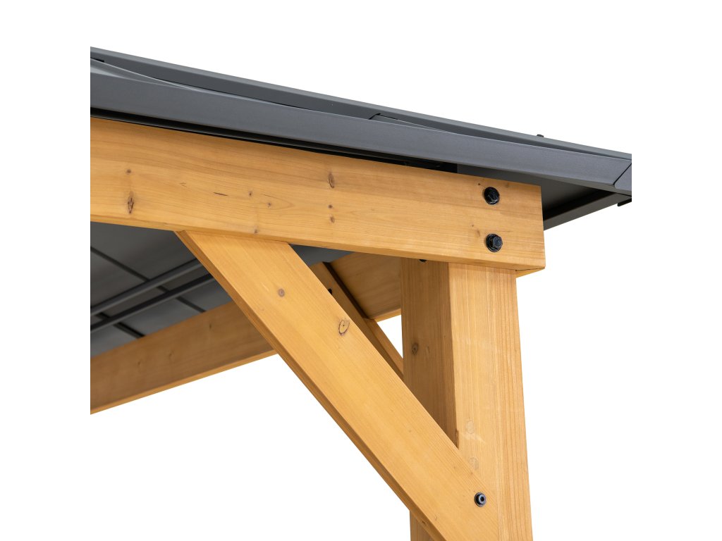 Trivor 390 x 450 cm FSC 100% two-tiered Hard Top Gazebo with Anthracite Steel and with Curtain & Netting