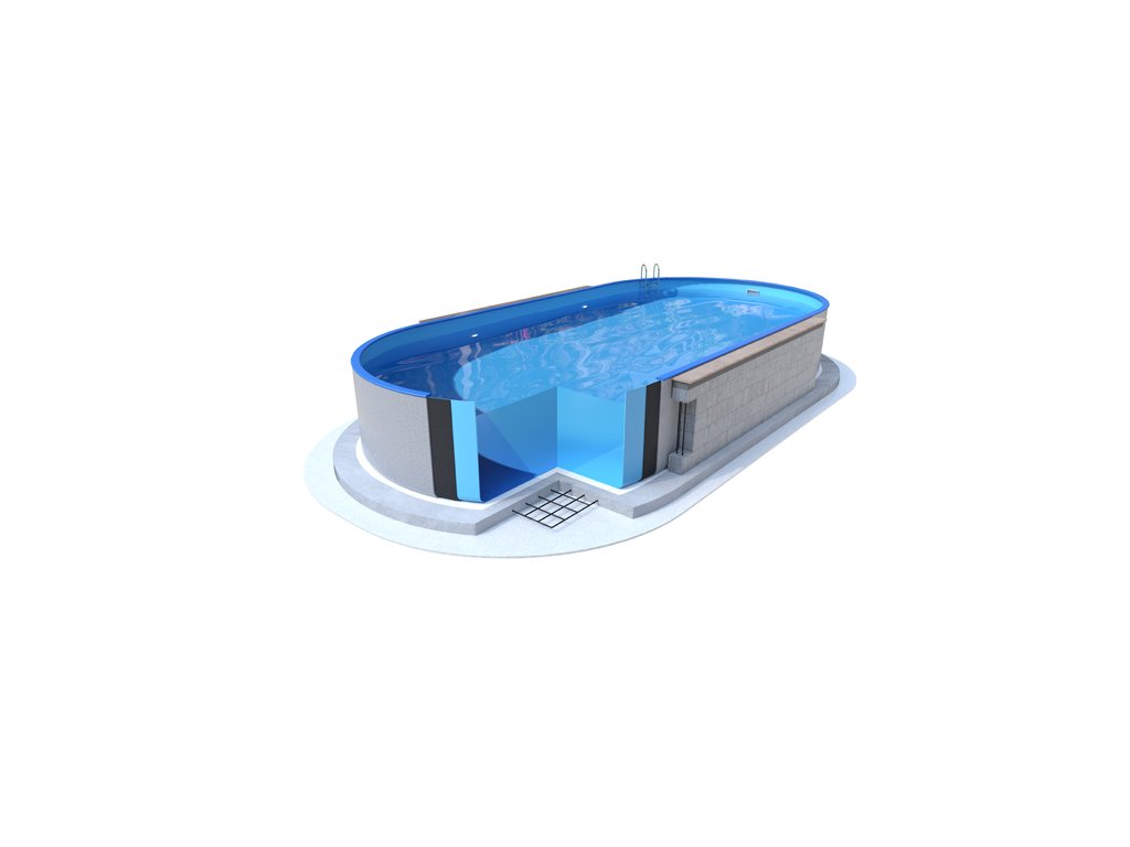 Ibiza oval - 3.50 x 7.00 x 1.20 m - wall thickness 0.6mm, top combi blue rails, bottom rails P1/P3, with holes for skimmer and backjet