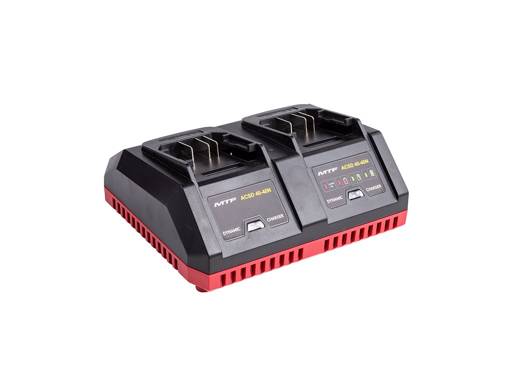 It is suitable for both batteries from the MTF 40 V series (capacity 2 Ah, 4 Ah). Each slot offers a charging current of 2 A for gentle and efficient charging. With an output of 105 W, it provides a reliable and fast charging process for your batteries.