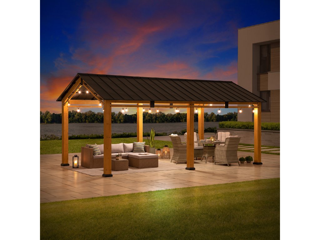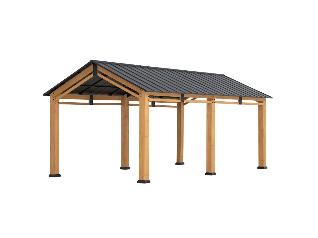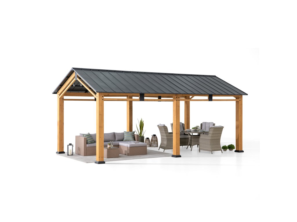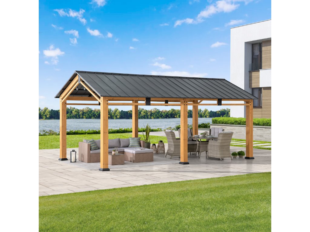 Diran 603 x 336 cm FSC 100% Cedar Framed Gazebo with Anthracite Steel Roof Carport Leg 12