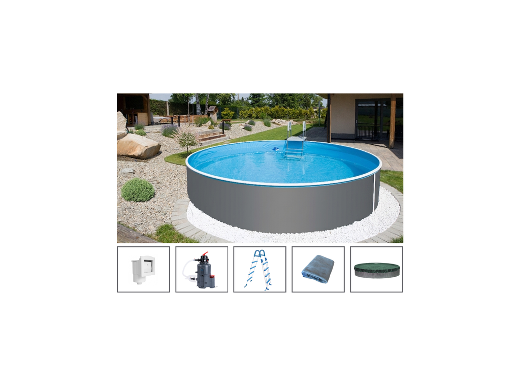 POOL SET - Azuro 3.6x1.2m GRAPHITE / WHITE - no filter, with off-axis holes