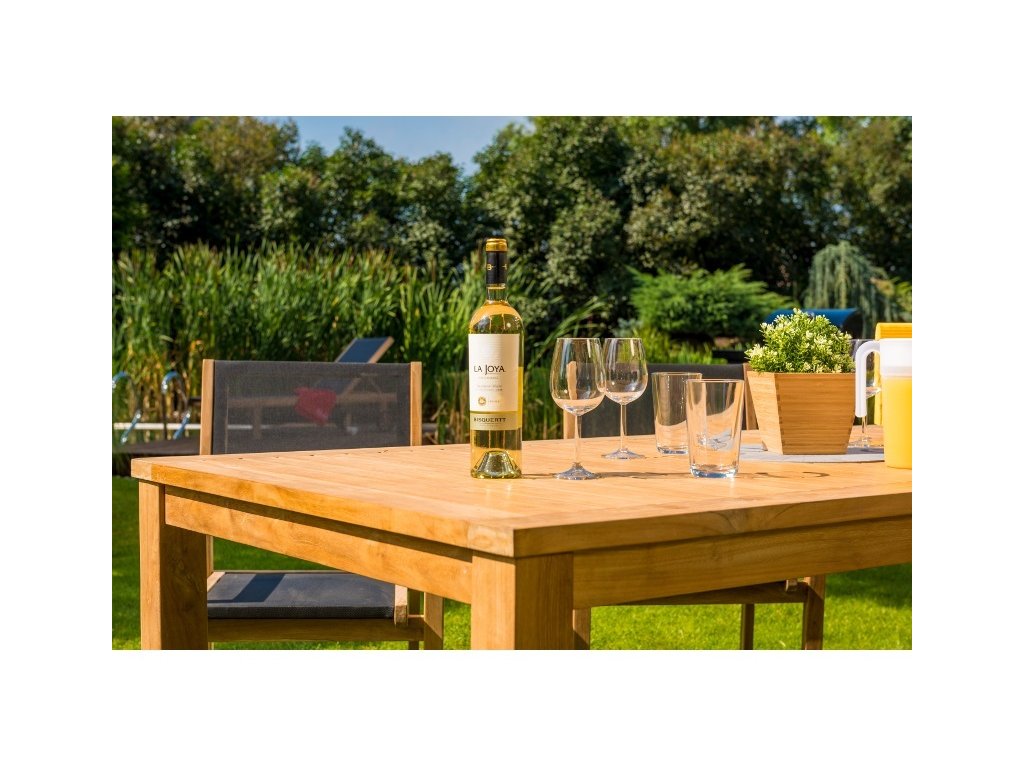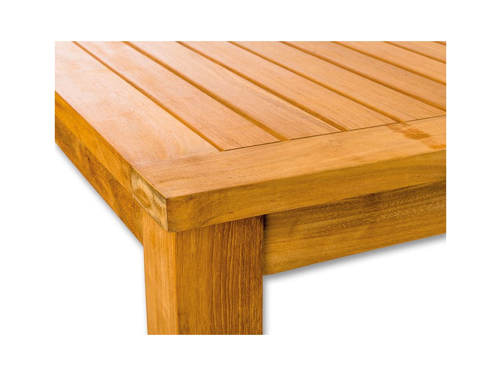 Wytrzymały, solidny stół Vegas w kształcie prostokąta jest wykonany przy użyciu tradycyjnego, sprawdzonego procesu stolarskiego z drewna tekowego. Jest to bardzo wysokiej jakości element meblowy, zarówno solidny, jak i stabilny i bardzo trwały.