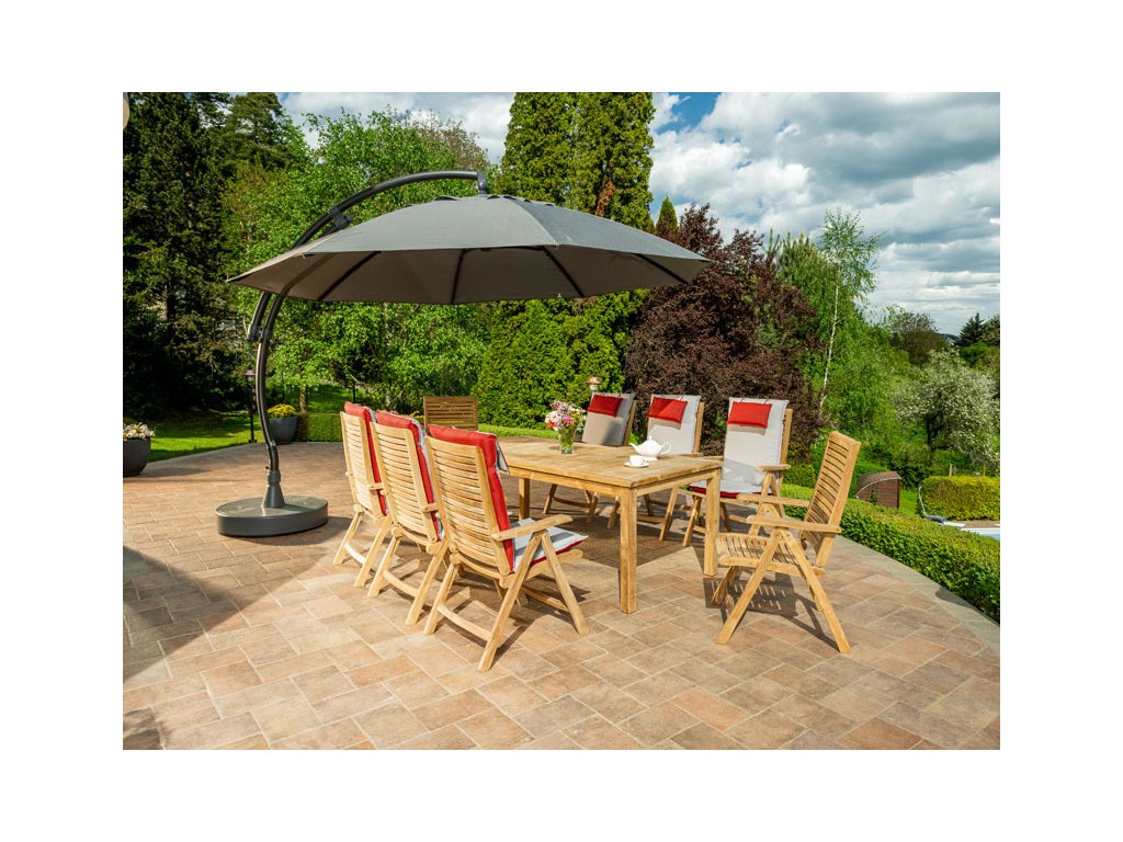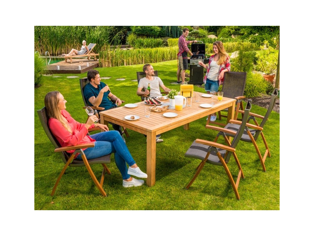 Najcenniejszą właściwością drewna tekowego jest jego niezwykle długa żywotność i wysoka odporność na działanie czynników atmosferycznych. Nasze meble ogrodowe wykonane z wysokiej jakości indonezyjskiego drewna tekowego można pozostawić w ogrodzie przez cały rok i nie ma potrzeby odstawiania ich na zimę do chronionych pomieszczeń. Jednocześnie drewno tekowe jest bardzo popularne ze względu na swój kolor. Ponadto można wpływać na wybór odcienia od jasnego do ciemnobrązowego poprzez odpowiednie stosowanie różnych rodzajów olejów tekowych i innych produktów do pielęgnacji. Bez regularnej pielęgnacji mebli, drewno osiągnie charakterystyczny srebrno-szary kolor. Aby zachować oryginalny miodowo-brązowy kolor, zalecamy konserwację mebli za pomocą oferowanych przez nas produktów do pielęgnacji.