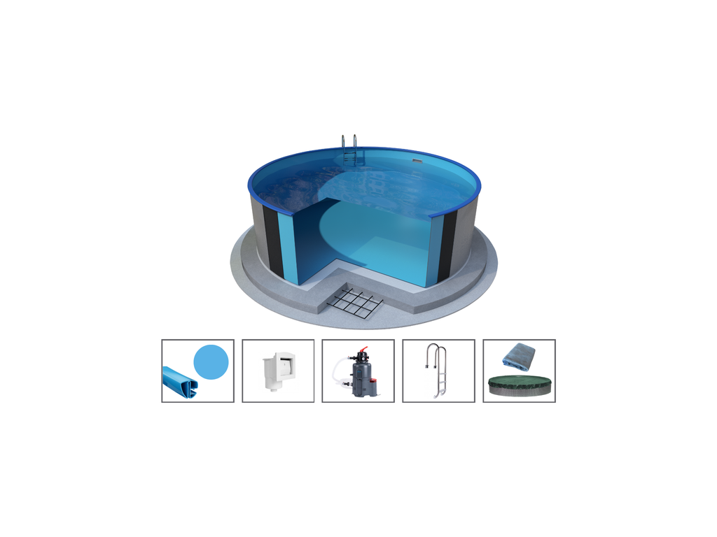 POOL SET - Ibiza round - 3.60 x 1.20 m - white wall thickness 0.6mm, with holes for skimmer and backjet, bottom rails