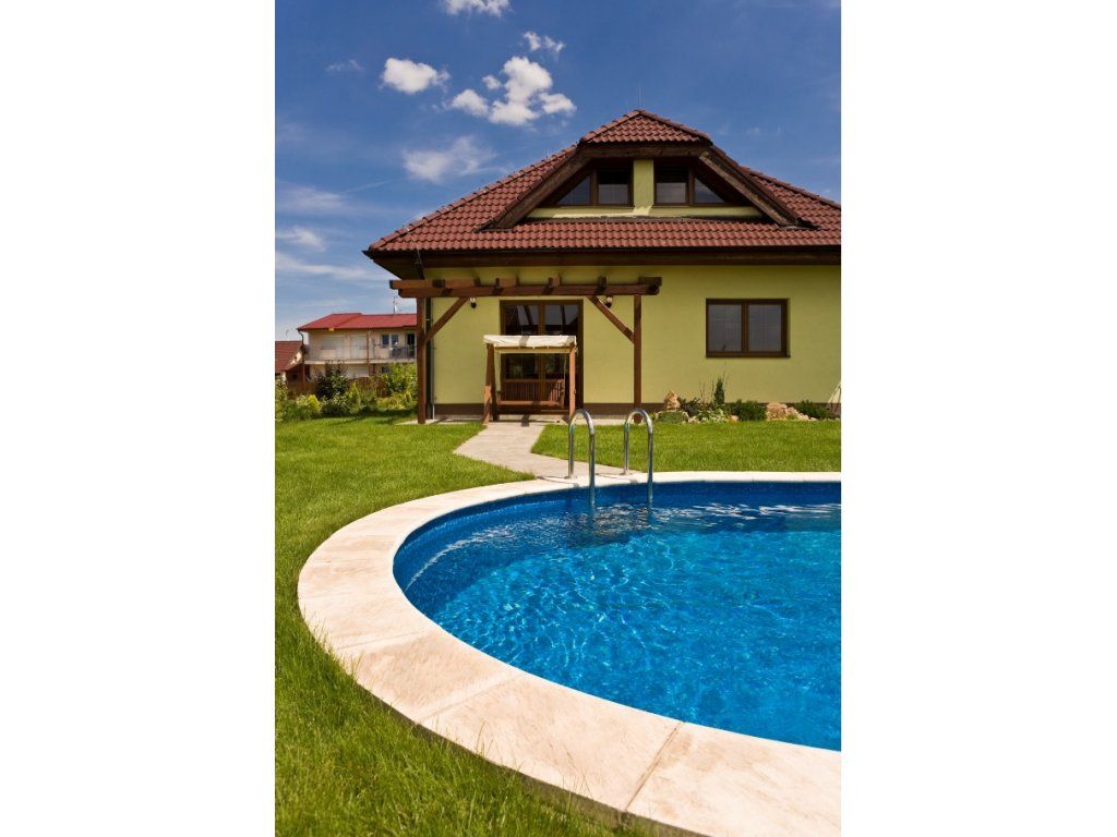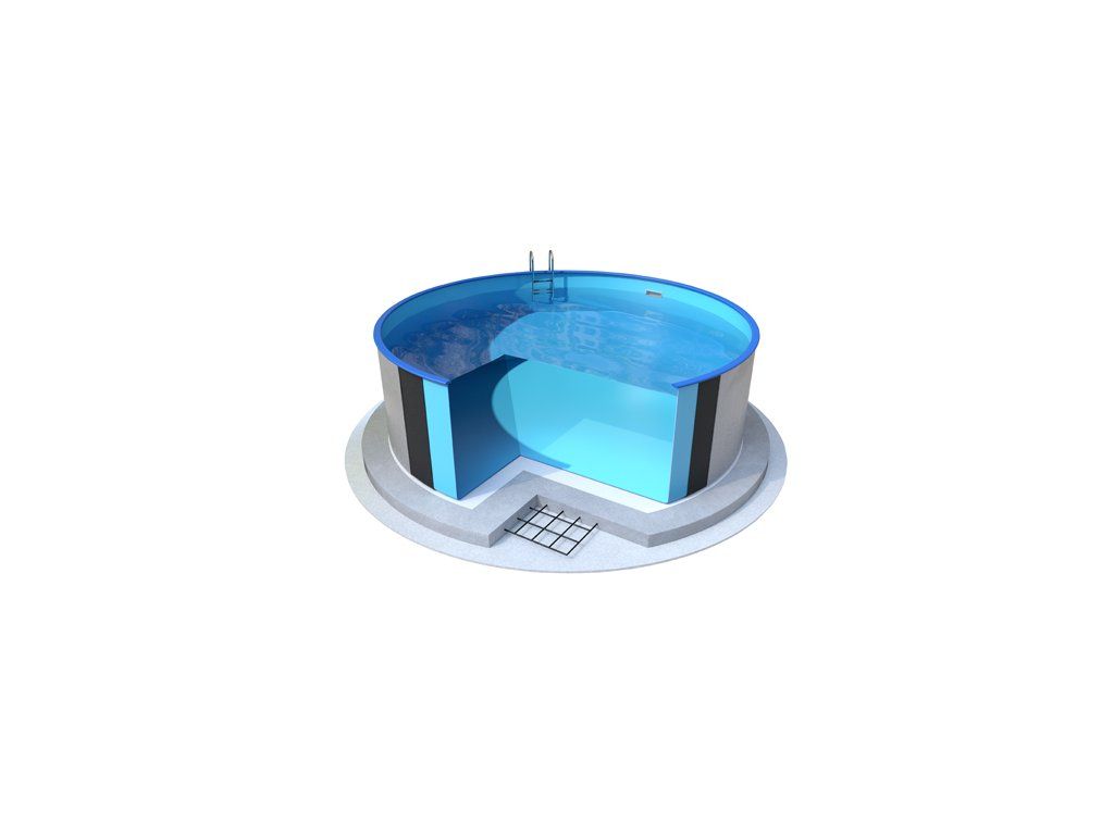 - Ibiza round - 4.60 x 1.20 m - white wall thickness 0.7mm, with holes for skimmer and backjet, top blue combi rails, bottom rails