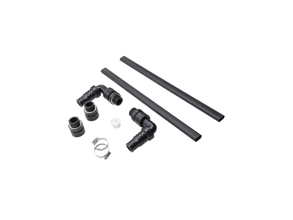 1× accessory kit (incl. elbows, plugs, flat seals, spring rings, nuts, barbs, silicone O-rings, adapters, hose clamps, and lubricant)